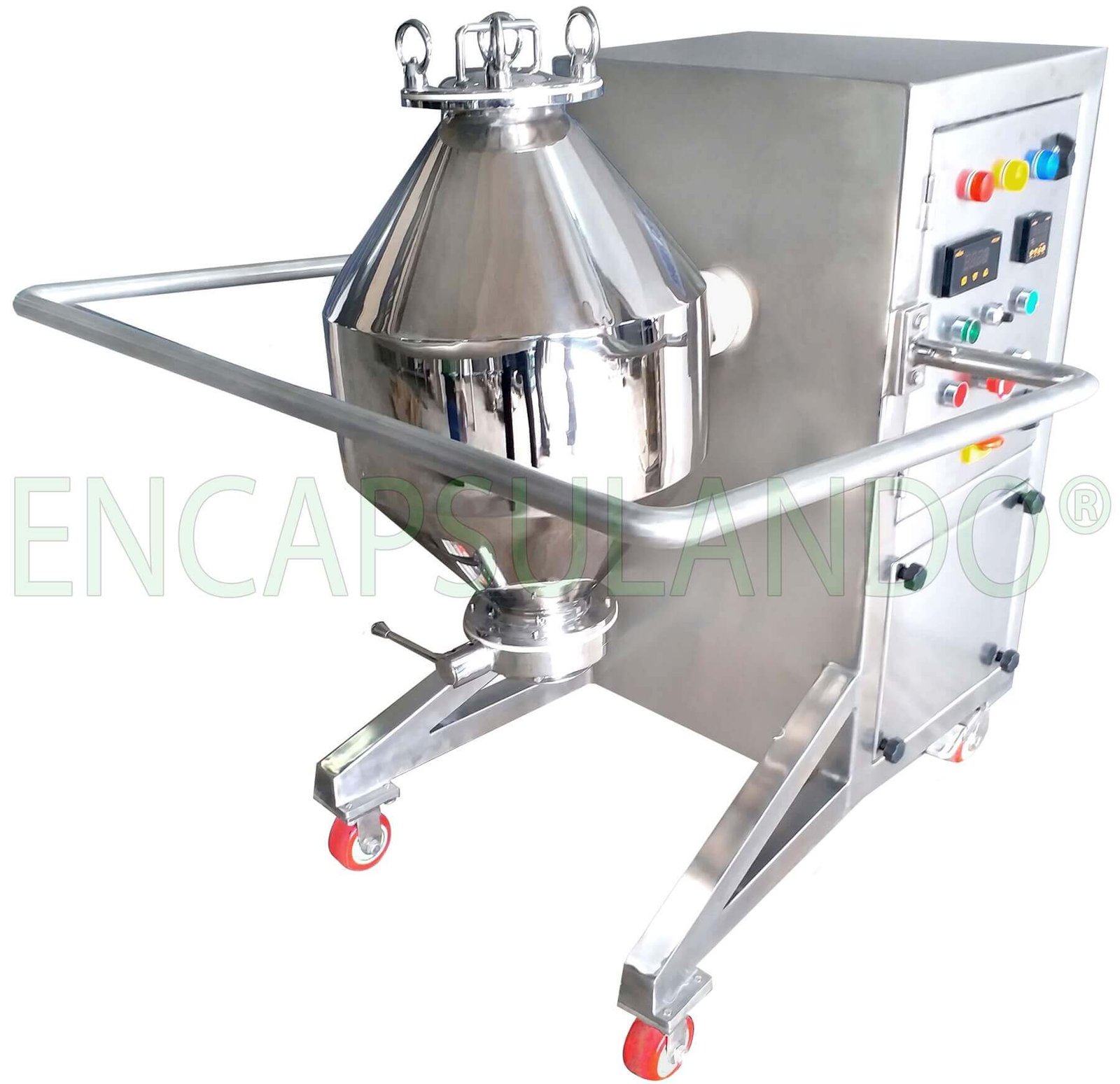 La mezcladora de polvos o gránulos Doble Cono es ideal para mezclar o lubricar y mezclar en la industria farmacéutica, nutracéutica, alimentaria, química, cosmética, cerámica, pesticidas, plásticos y otras industrias aliadas.